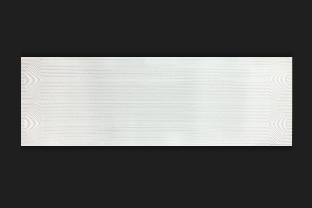 It combines minimalism and elegance through a geometric embossed design. Its straight vertical lines are interrupted at the top by soft, repetitive arches that bring rhythm and visual harmony to the space. Its marked texture and clean finish create a three-dimensional effect that plays with light, creating subtle contrasts between shadows and highlights. This panel is ideal for accent walls in living rooms, reception areas, hotels, restaurants, or corporate spaces that seek to convey sophistication and modernity. Arc Line adapts to both contemporary and more classic styles, thanks to the versatility of its architectural forms inspired by timeless geometry.